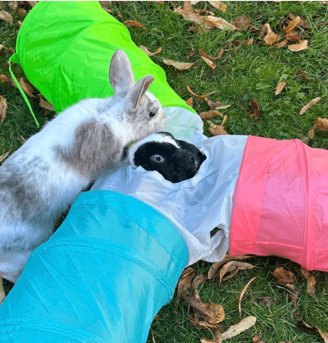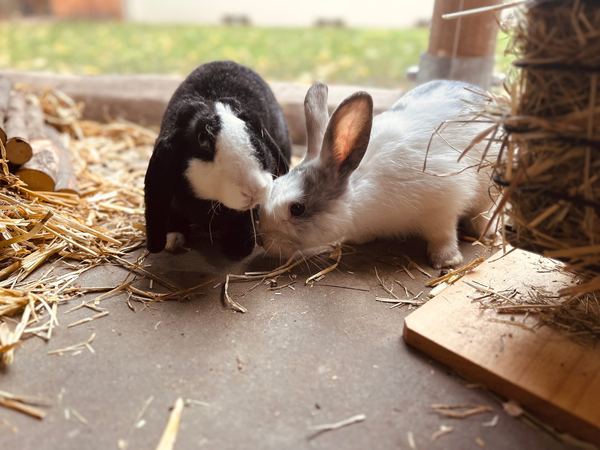 Hier leben Mimi und Mo ganzjährig im Garten, haben geschützte Rückzugsorte, frisches Einstreu, viel Heu und täglich Frischfutter. Stundenweise dürfen die beiden sogar einen großen Auslauf erkunden, in dem sie regelmäßig nach Herzenslust springen, schnuppern und buddeln. So haben unsere beiden Fellfreunde immer Abwechslung, frische Luft und viel Platz zum Entdecken.