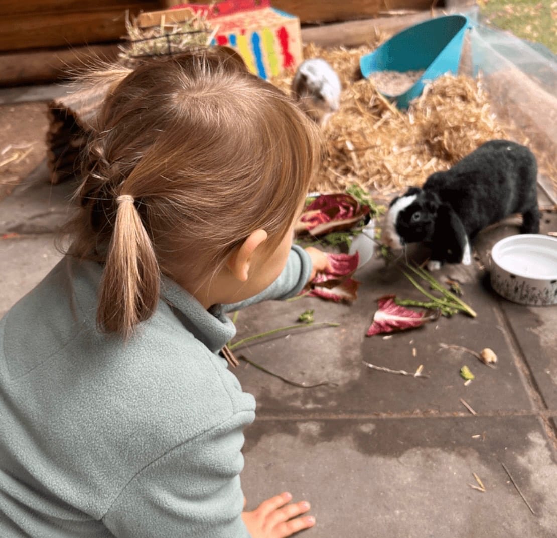 Unter der Woche kümmern sich die Kindergruppen im Wechsel um Fütterung, Pflege und Sauberkeit. An den Wochenenden und während der Schließzeiten übernehmen unsere Eltern liebevoll die Betreuung der Tiere. Dafür gibt es eine gut organisierte Eintragungsliste, in die sich Familien im Voraus eintragen können.